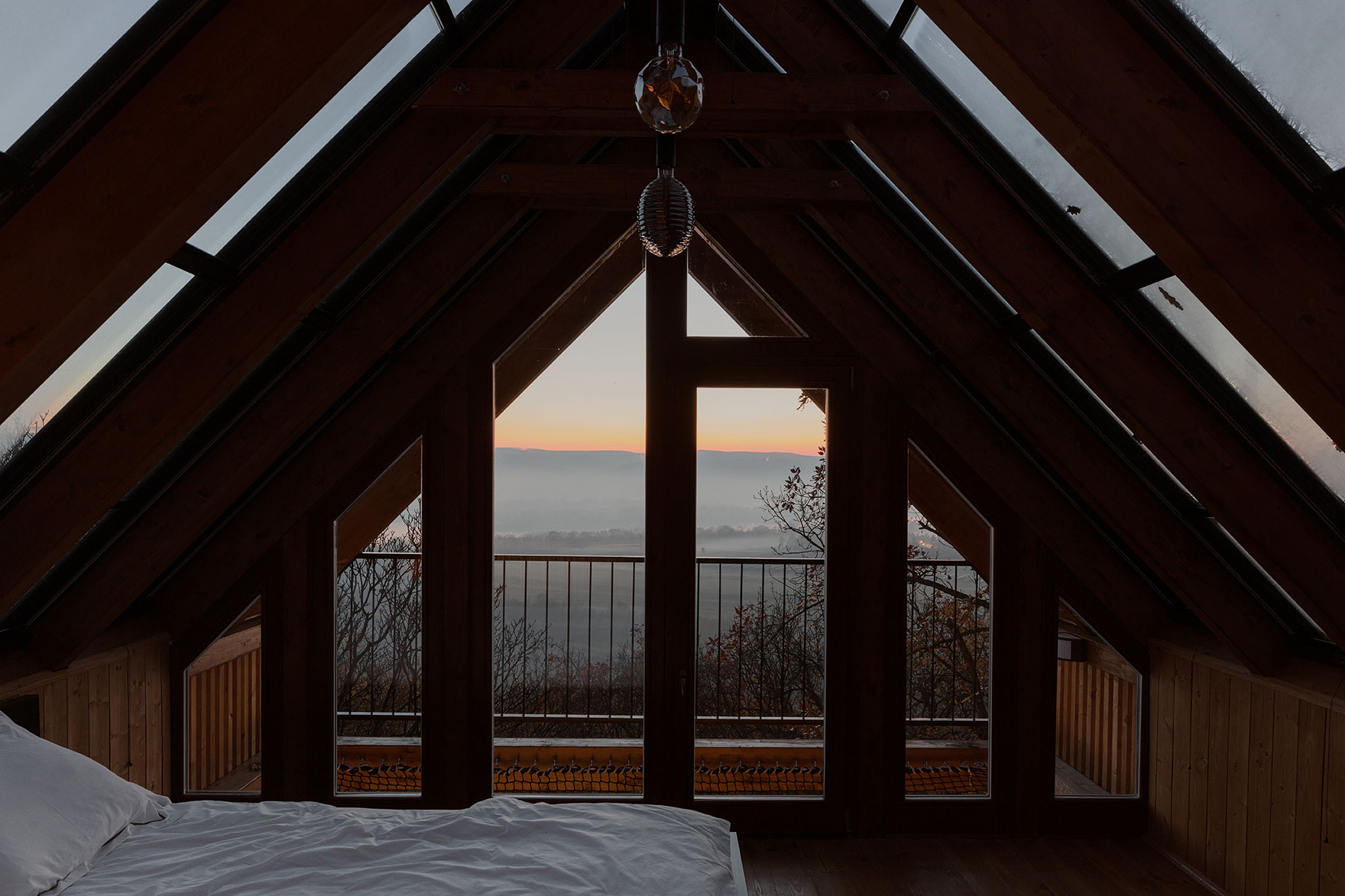 The special feature of the house is its appearance at night, as it glows in the dark like a lantern in the forest. The roof is made of glass, so one can sleep under the stars indoors.